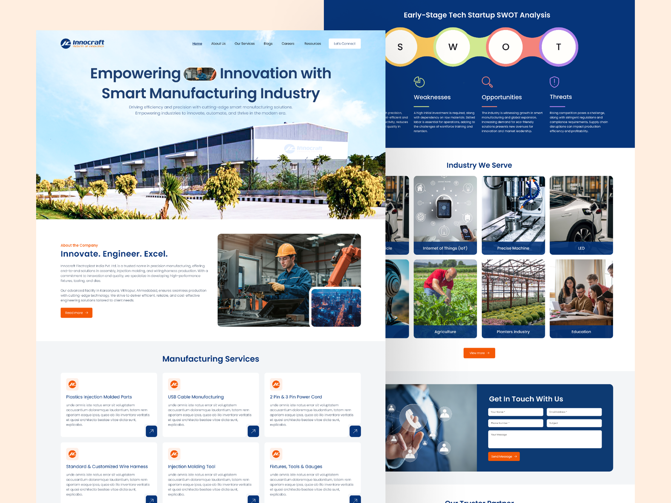 Innocraft is a modern website designed for a manufacturing company that focuses on showcasing its industrial capabilities, products, and services. The platform helps businesses, partners, and clients easily understand the company’s expertise, manufacturing process, and commitment to quality.